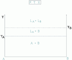 T, es la temperatura eutéctica, a la que es el mínimo de temperatura de fusión de cristales del sistema A, B.