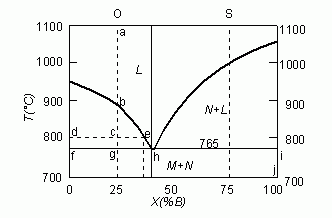 (3).- Es el punto eutéctico y hay 3 fases: A, B y L(líquido).