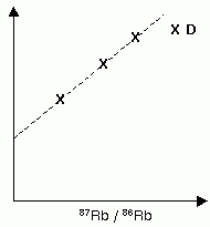 En el momento de formarse la roca todos los isótopos poseen la misma relación isotópica, cosa que ocurre igual en la cristalización fraccionada. Cuando el tiempo transcurre uno aumenta y el otro disminuye.