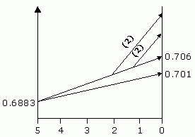 La relación actual ya no es 0.6883 sino que a lo largo del tiempo ha ido aumentando, dando una recta con una pendiente pronunciada. La relación isotópica en el manto actual oscilaría entre 0.701 y 0.706. Entonces, si actualmente se formara un magma, este debería tener una relación que estaría entre los dos valores anteriores.