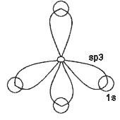 | 2s1 2p1+1+1 ---------> (sp3)1 (sp3)1 (sp3)1 (sp3)1 => |