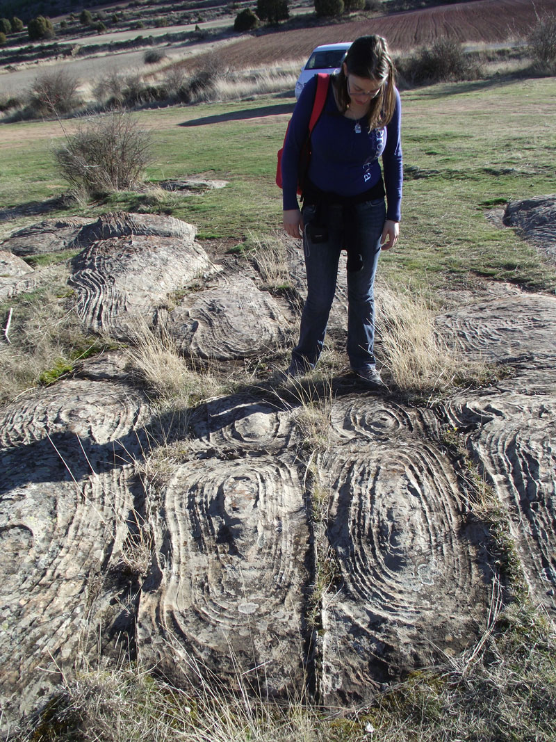En la fotografía aparecen anillos de Liesegang en areniscas del Triásico. El afloramiento se encuentra cerca de Albaracín en Teruel (España).