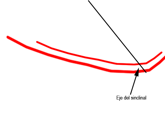 En la fotografía se observa el eje del sinclinal del relieve invertido que constituye la Mesa de Gayubar. En el afloramiento se observan calizas con fauna y margas del Cretácico Superior, concretamente del Cenomaniense.