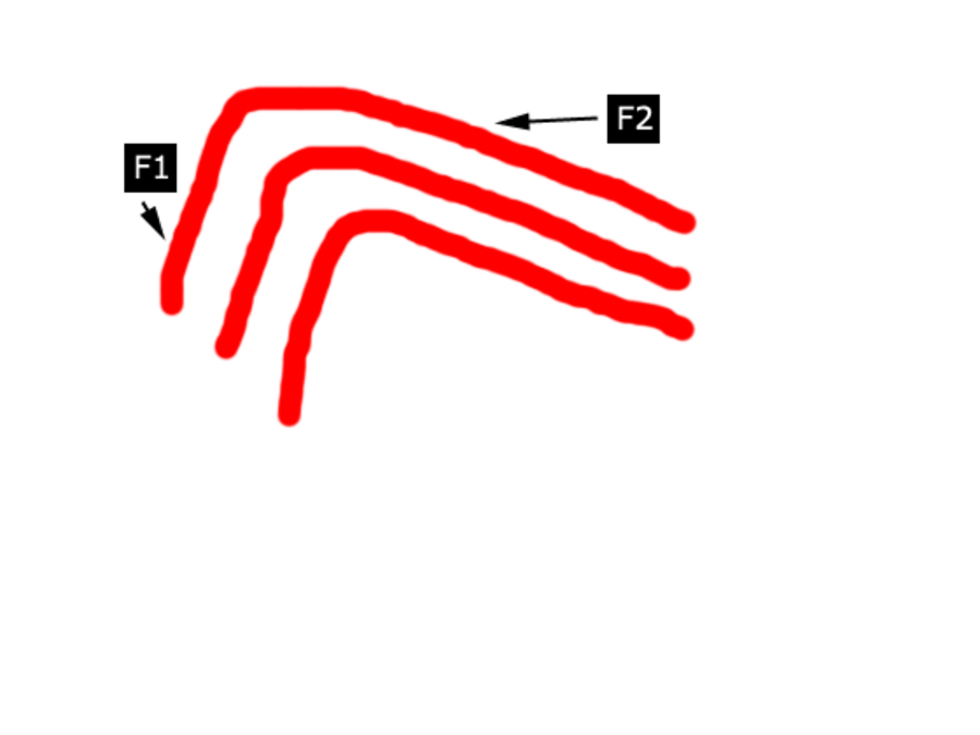· F1: ß = 63° NW; δ = N 50° EEstos materiales, presentan además de esta compresión otra cuya dirección es prácticamente perpendicular.