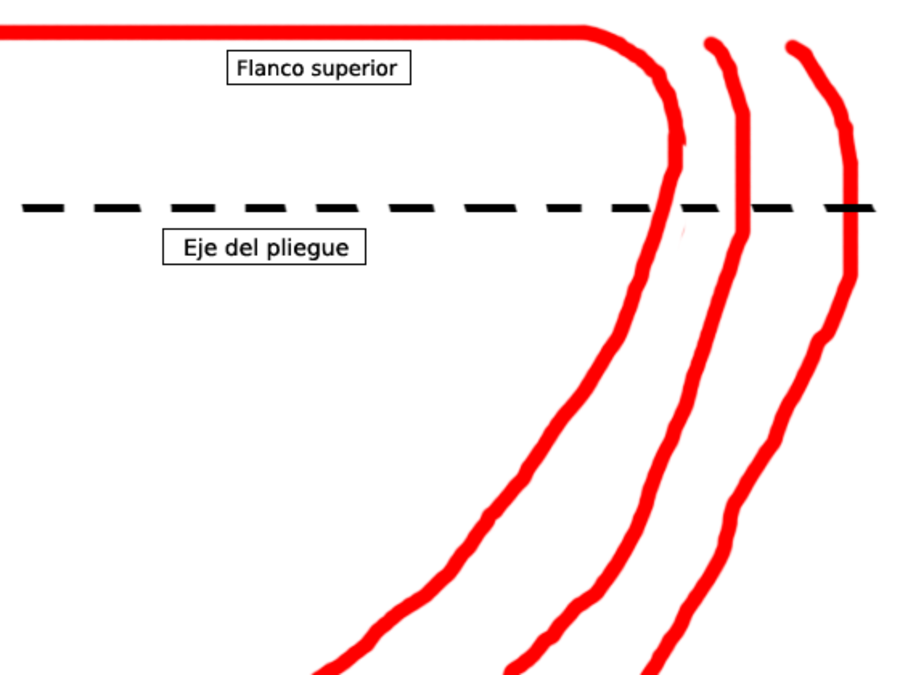La fotografía está tomada en el Parque Natural del Alto Tajo, en un cañon por donde discurre el Río Tajo. En la imagen, se aprecia un pliegue-cabalgamiento, el flanco superior se encuentra en la parte de arriba de la imagen, como se indica; el eje transcurre a media altura y en la zona inferior se encuentra la falla.
