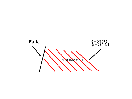 En la fotografía, como se indica, se puede observar una de las dos fallas que afectan a materiales del Triásico Inferior en esta zona.